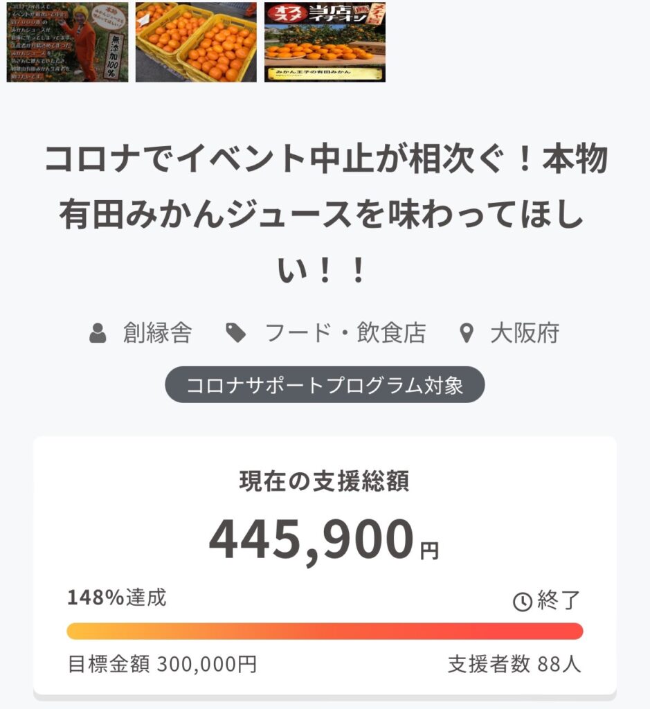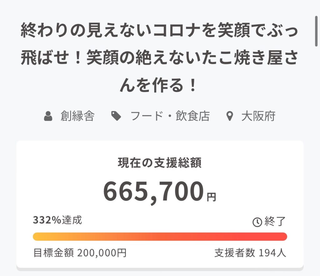 クラウドファンディングサポート 2020.11.03 まちづくり まちの歴史と文化 イベント キッチンカー 一般社団法人地域活性化プロジェクト縁GIN 地域づくりプロジェクト 地域の課題解決 地域イベント 地域ビジョン 地域協力団体 地方自治体 官民協働 観光促進 近畿地方 都市計画 防災対策 岡山から大阪に来た夢ある若い子がクラウドファンディングにチャレンジ‼️ クラウドファンディングのサポートをさせて頂きました その他クラファン実績 生産者支援 前の記事 赤穂市の地域創生事業 次の記事