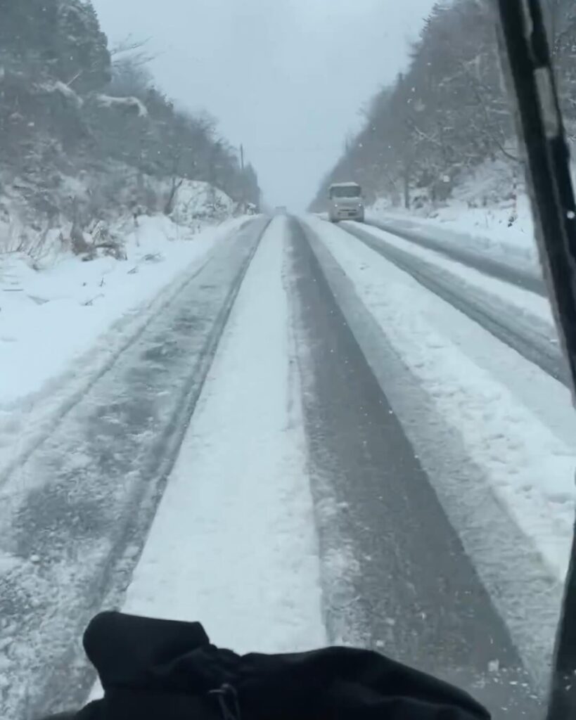 今日は雪積もって、一時は前が見えないくらい吹雪いてました。
