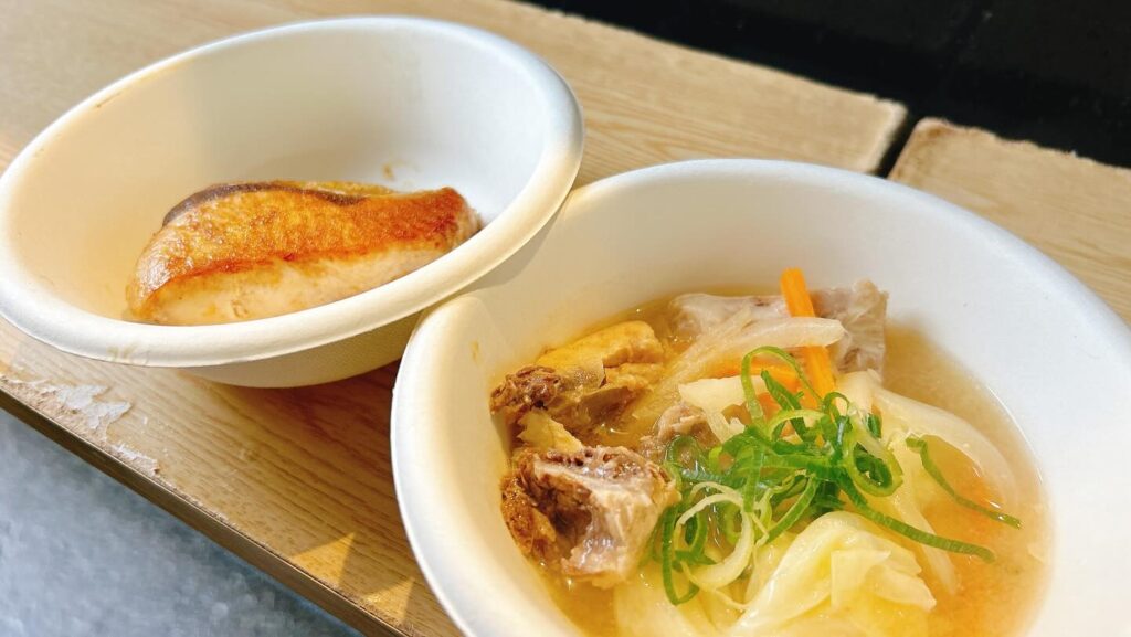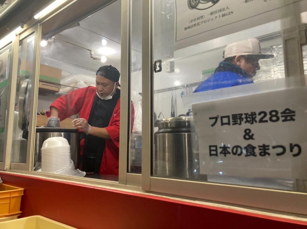 キッチンカー炊き出しは本日も稼働しています。今日は株式会社cooperの蜜浦くんと、キッチンカー事業者のせなちゃんチームでが頑張ってくれています。