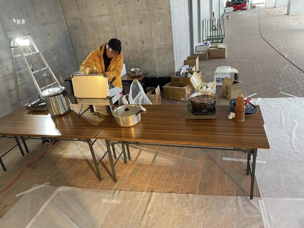 昨日も震度6あり不安な日を過ごす方の助けになればと、35人ほどのチームを組み、行政と連携しながら避難場所、自主避難場所へ炊き出しと物資支援をしています。
