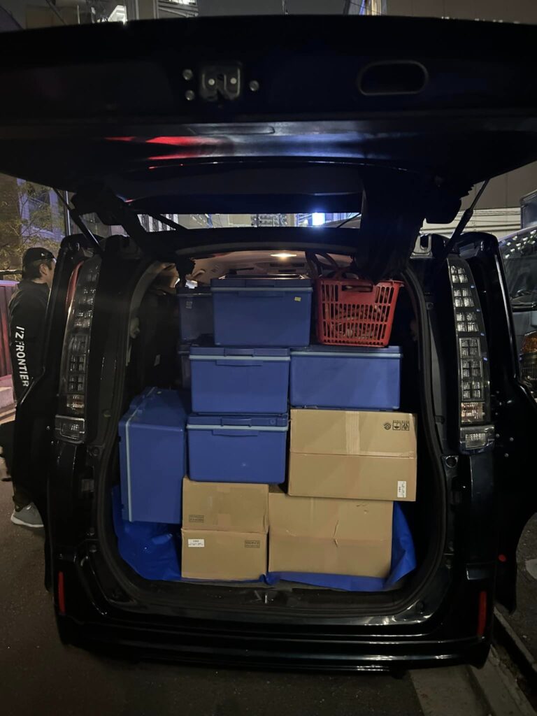次は12日に物資を運びますので明日の24時までに、守口事務所(守口市本町1-6-5B1F)までよろしくお願いします。