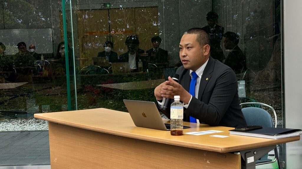 今まで多くの自治体とのまちづくり関連事業の実績もあり、現在大阪府と連携しで石川県の被災地への支援等も行っています。枦山からは、まちづくりのビジョンを共有する上でどのような考え方や行動をしないといけないのかを実体験をもとに話をさせていただきました。