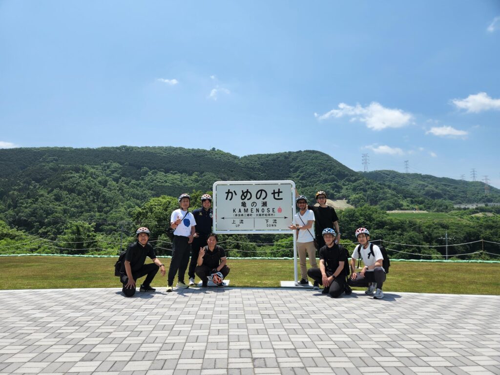 今回の柏原市のプログラムでもサイクルツーリズムに観点だけでなく、防災研修のテーマとしても亀の瀬見学や資料室での意見交換も行いました。