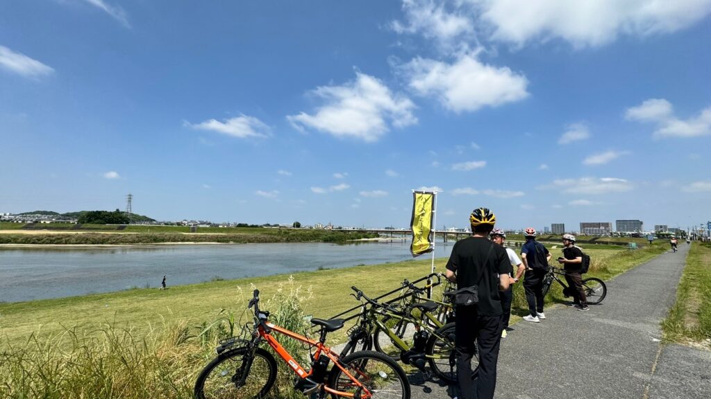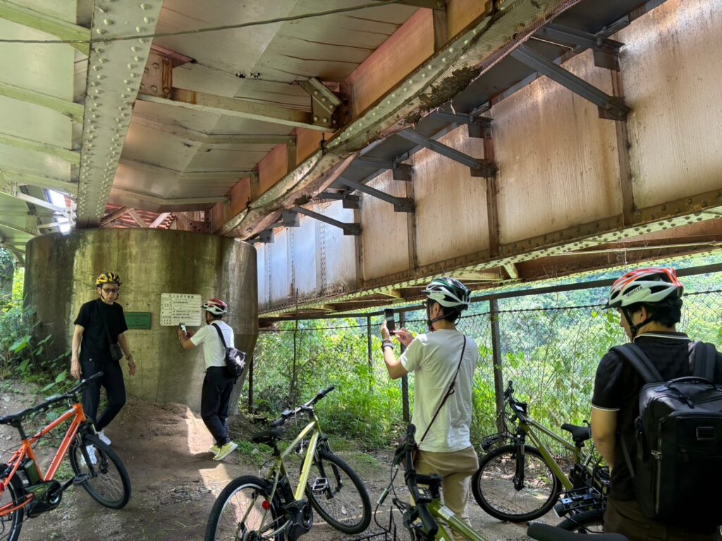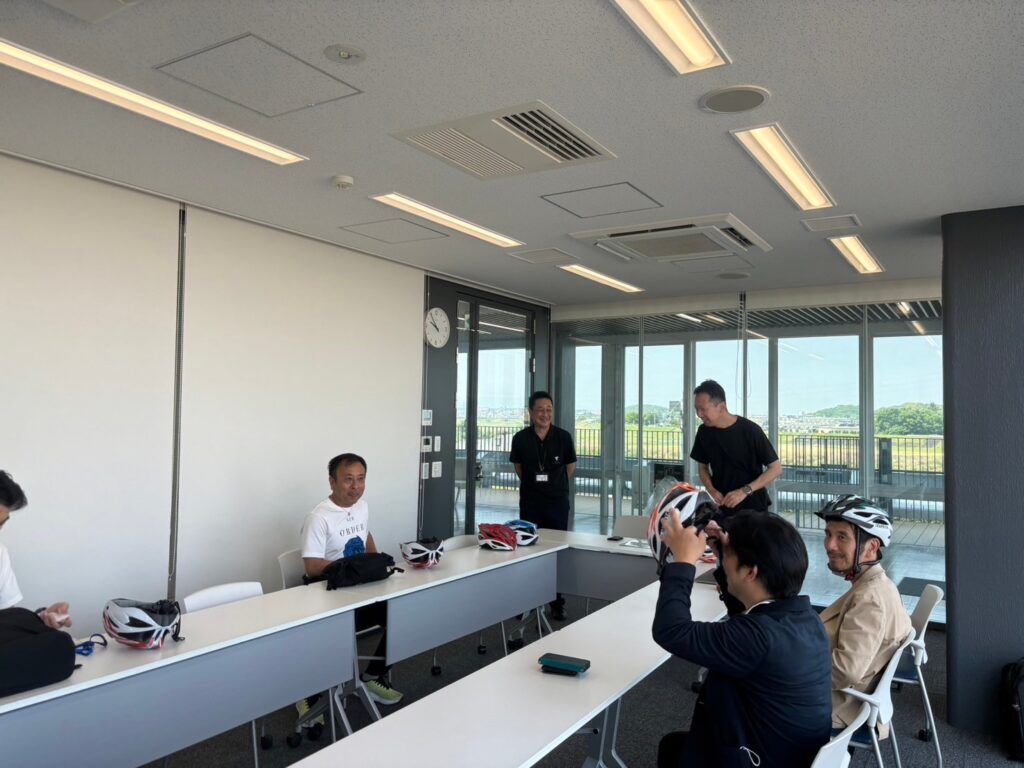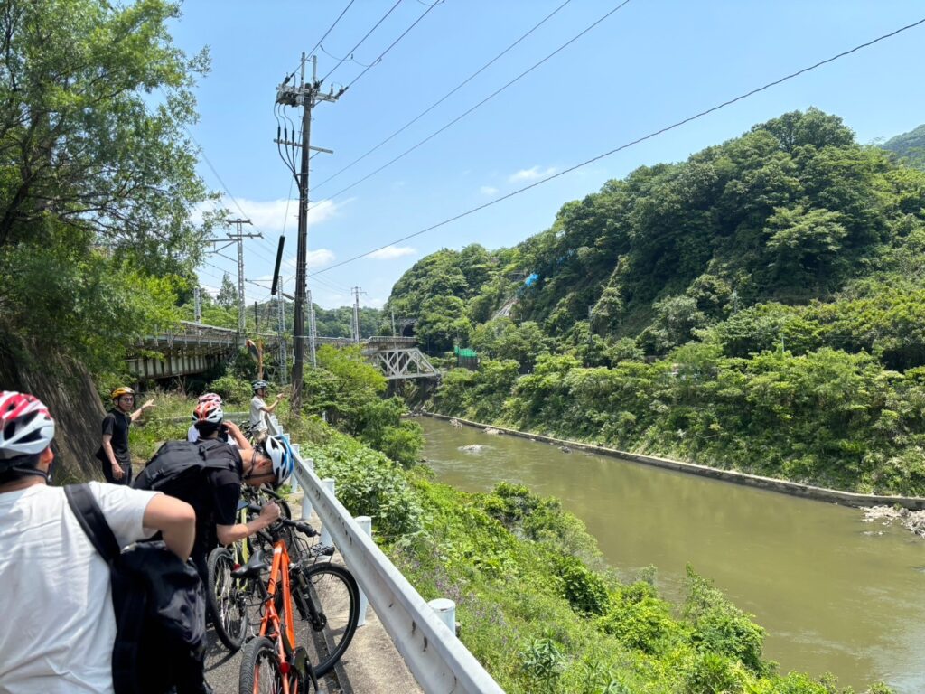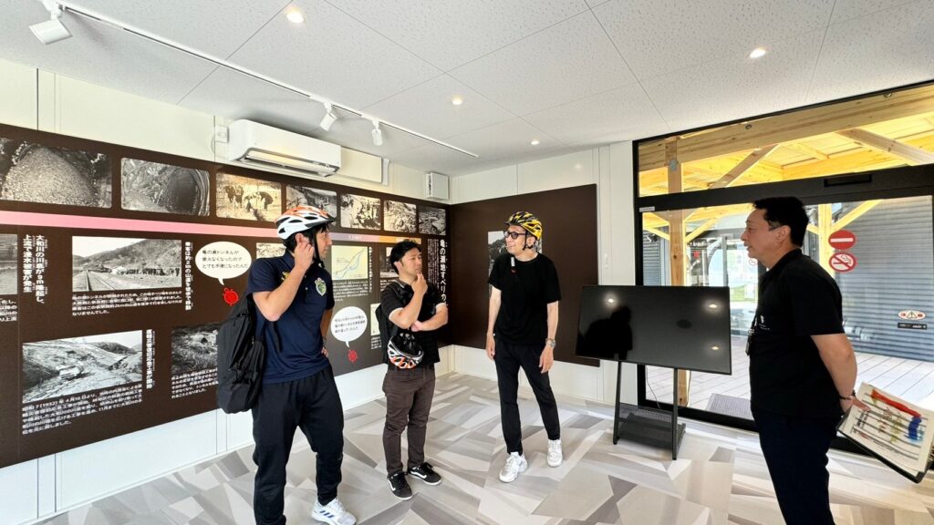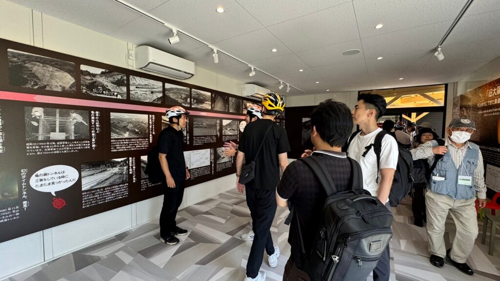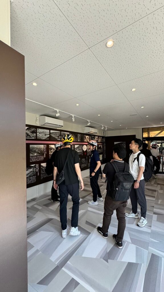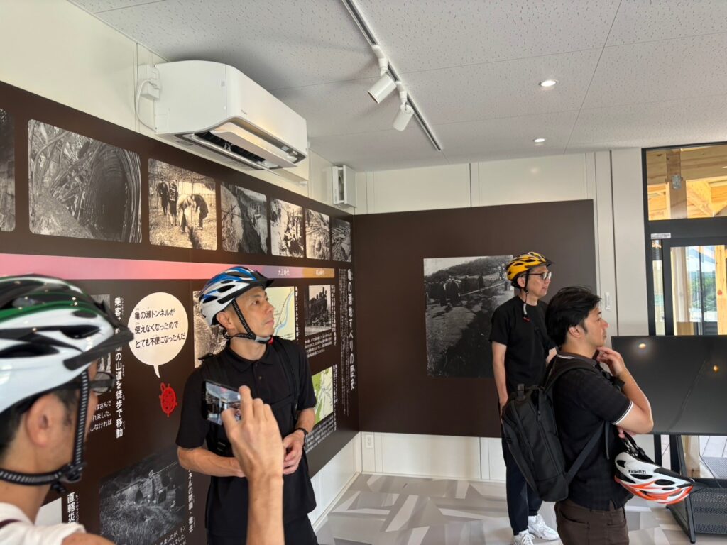 今回の柏原市のプログラムでもサイクルツーリズムに観点だけでなく、防災研修のテーマとしても亀の瀬見学や資料室での意見交換も行いました。