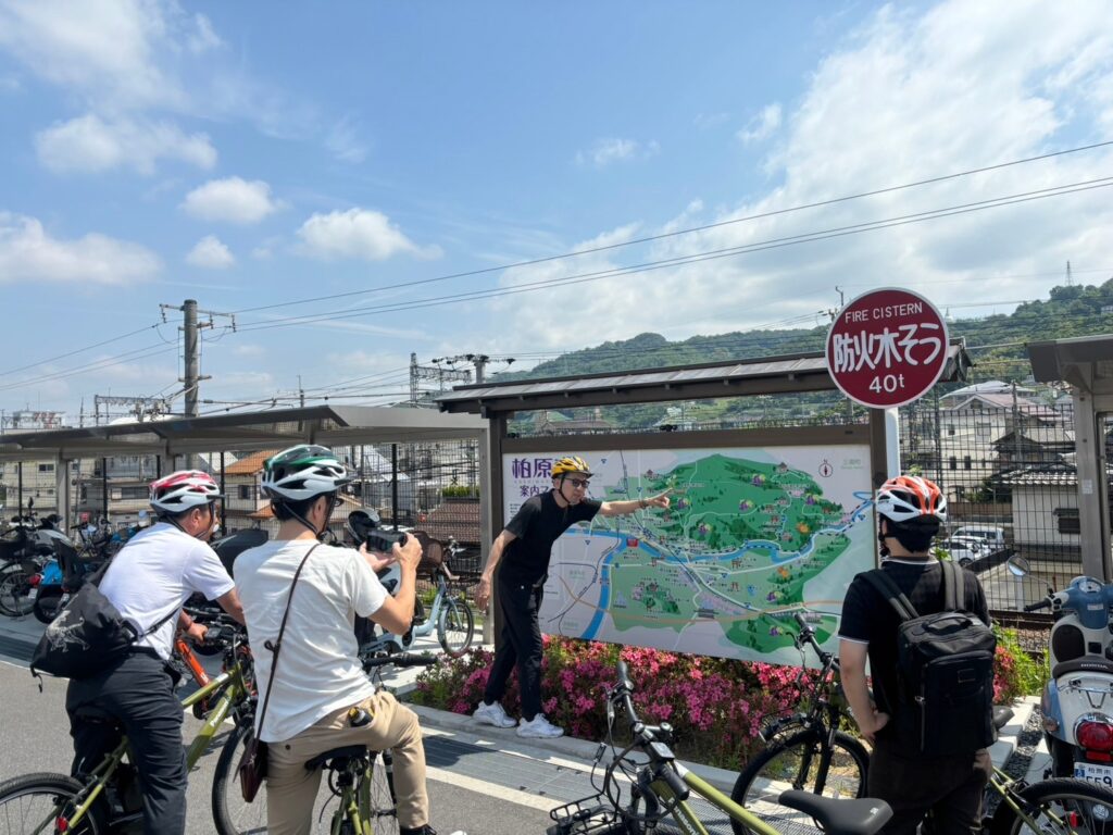 自転車にて柏原市を周遊する中で、柏原市の歴史や文化に関するお話や柏原市としての魅力や課題などもお話いただきました。