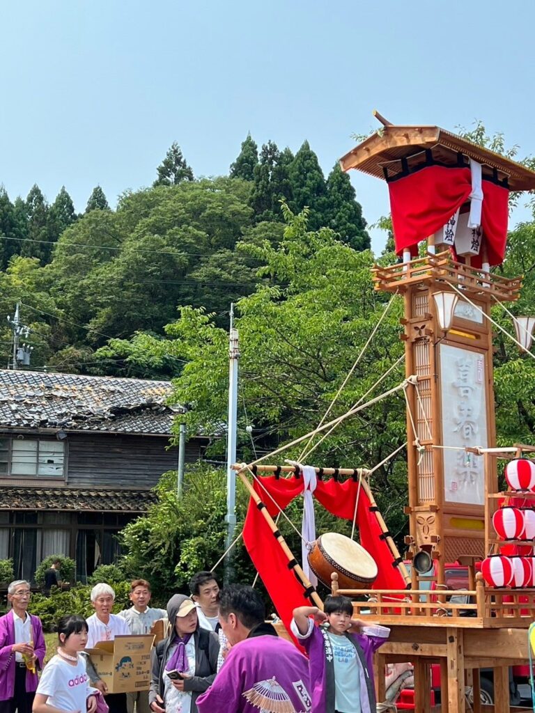 サイズの小さなキリコは影響を受けず残ってて、それを15年ぶりに引っ張り出し、地元×私達とで担ぎ練り歩きました。地域の方とのお話の中で、キリコに対する想いやお話などもさせていただきました。